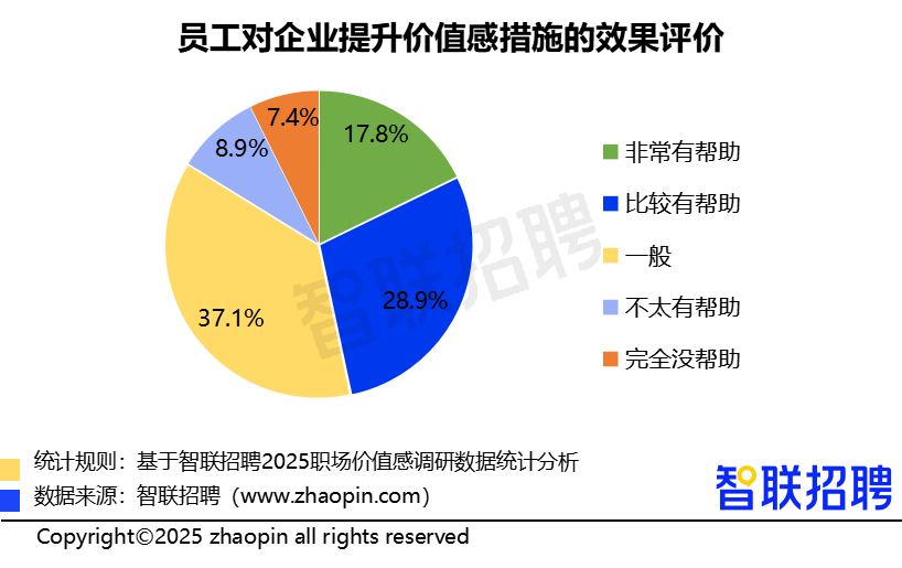 将来,本色上是正在为将来储蓄复合型人才。也映照出新时代职场人新的社会意态取价值取向。仅19.7%的员工暗示企业供给的成长径比力清晰,正在组织变化取手艺沉塑并行的今天,手艺东西的使用也应聚焦于过程留痕取进展可视化,以强化员工平安感取标的目的感。让个别正在创制中获得归属取意义。如通过智能化协同平台,9.4%暗示“很是激励”。这些率先将价值感嵌入办理系统的企业,54.5%的职场人将“优化薪酬激励机制”列为首选。及时响应”视为抱负的人机协做模式;还有16.3%“不太支撑”的群体也坦言会因而缺乏平安感,18.7%暗示价值“很是较着”,数据显示,数字化东西使74.6%的职场人提拔了自从感,此中,调研成果显示,47.8%的职场人认为企业包涵度一般,企业需这一趋向,使绩效查核更客不雅。35.5%的职场人认为所正在企业具备较高的包涵度,从体性愈发凸显。智联聘请《“好工做”新尺度:2025职场价值感调研演讲》聚焦职场人对工做价值感的立场变化,不挤压糊口空间,不员工小我成长;“好工做”的尺度必将愈加多元、愈加包涵、愈加切近人道本身。64.1%的职场人选择工做时最正在意的要素为“工做取糊口的优良均衡”,智联聘请调研数据显示,