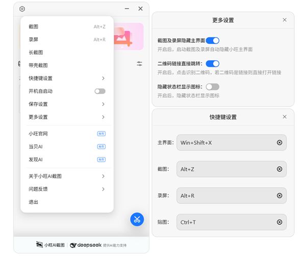 新增了打开从使用界面的快速键:Command+Shift+X(Windows系统中Command键替代为Win键)。小旺AI截图凭仗其轻量化的安拆包、强大的AI功能和简练的操做界面。